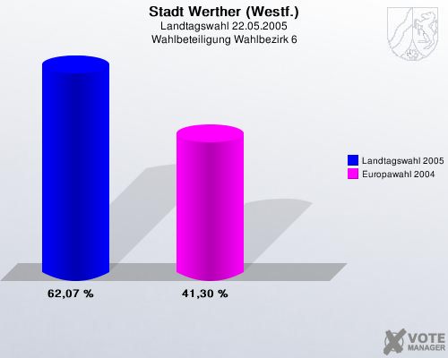 Stadt Werther (Westf.), Landtagswahl 22.05.2005, Wahlbeteiligung Wahlbezirk 6: Landtagswahl 2005: 62,07 %. Europawahl 2004: 41,30 %. http://www.votemanager.de