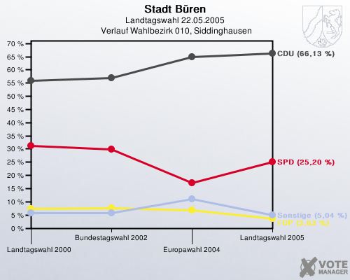 Stadt Büren, Landtagswahl 22.05.2005,  Verlauf Wahlbezirk 010, Siddinghausen: http://www.votemanager.de