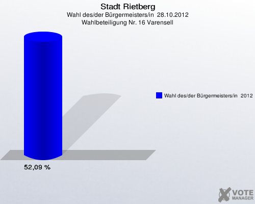 Stadt Rietberg, Wahl des/der Bürgermeisters/in  28.10.2012, Wahlbeteiligung Nr. 16 Varensell: Wahl des/der Bürgermeisters/in  2012: 52,09 %. http://www.votemanager.de