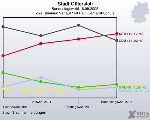 Stadt Gütersloh, Bundestagswahl 18.09.2005, Zweitstimmen Verlauf 140 Paul-Gerhardt-Schule: 3 von 3 Schnellmeldungenhttp://www.votemanager.de