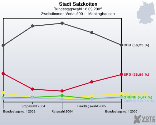 Stadt Salzkotten, Bundestagswahl 18.09.2005, Zweitstimmen Verlauf 001 - Mantinghausen: http://www.votemanager.de