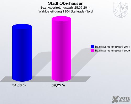 Stadt Oberhausen, Bezirksvertretungswahl 25.05.2014, Wahlbeteiligung 1904 Sterkrade-Nord: Bezirksvertretungswahl 2014: 34,08 %. Bezirksvertretungswahl 2009: 39,25 %. http://www.votemanager.de