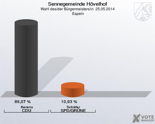 Sennegemeinde Hövelhof, Wahl des/der Bürgermeisters/in  25.05.2014,  Espeln: Berens CDU: 89,07 %. Schäfer SPD/GRÜNE: 10,93 %. http://www.votemanager.de
