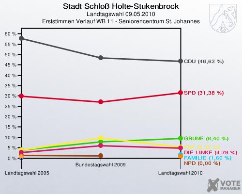 Stadt Schloß Holte-Stukenbrock, Landtagswahl 09.05.2010, Erststimmen Verlauf WB 11 - Seniorencentrum St. Johannes: http://www.votemanager.de