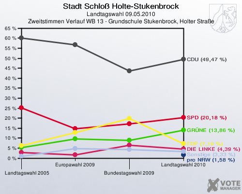 Stadt Schloß Holte-Stukenbrock, Landtagswahl 09.05.2010, Zweitstimmen Verlauf WB 13 - Grundschule Stukenbrock, Holter Straße: http://www.votemanager.de