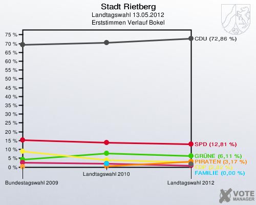 Stadt Rietberg, Landtagswahl 13.05.2012, Erststimmen Verlauf Bokel: http://www.votemanager.de