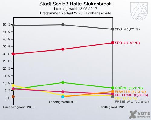 Stadt Schloß Holte-Stukenbrock, Landtagswahl 13.05.2012, Erststimmen Verlauf WB 6 - Pollhansschule: http://www.votemanager.de