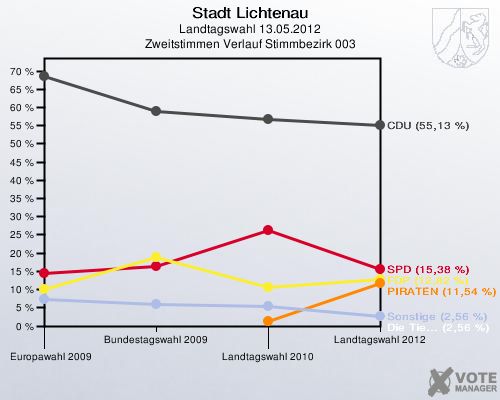 Stadt Lichtenau, Landtagswahl 13.05.2012, Zweitstimmen Verlauf Stimmbezirk 003: http://www.votemanager.de
