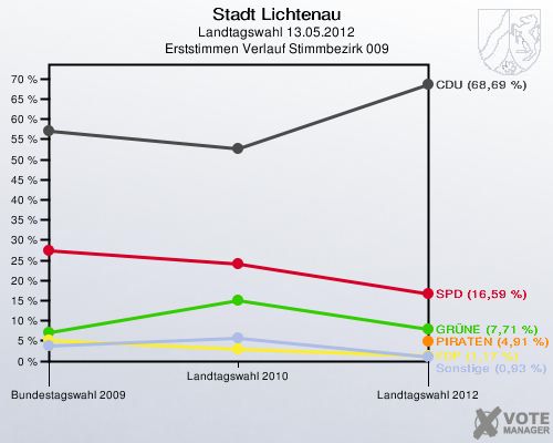 Stadt Lichtenau, Landtagswahl 13.05.2012, Erststimmen Verlauf Stimmbezirk 009: http://www.votemanager.de