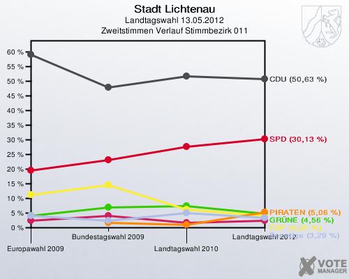Stadt Lichtenau, Landtagswahl 13.05.2012, Zweitstimmen Verlauf Stimmbezirk 011: http://www.votemanager.de